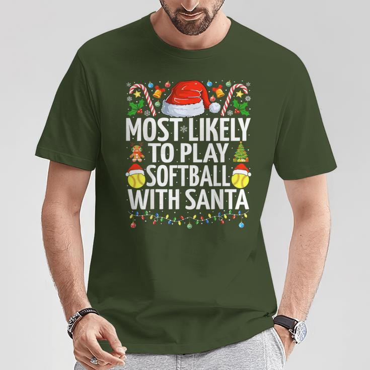 Most Likely To Play Softball With Santa Christmas Softball T-Shirt